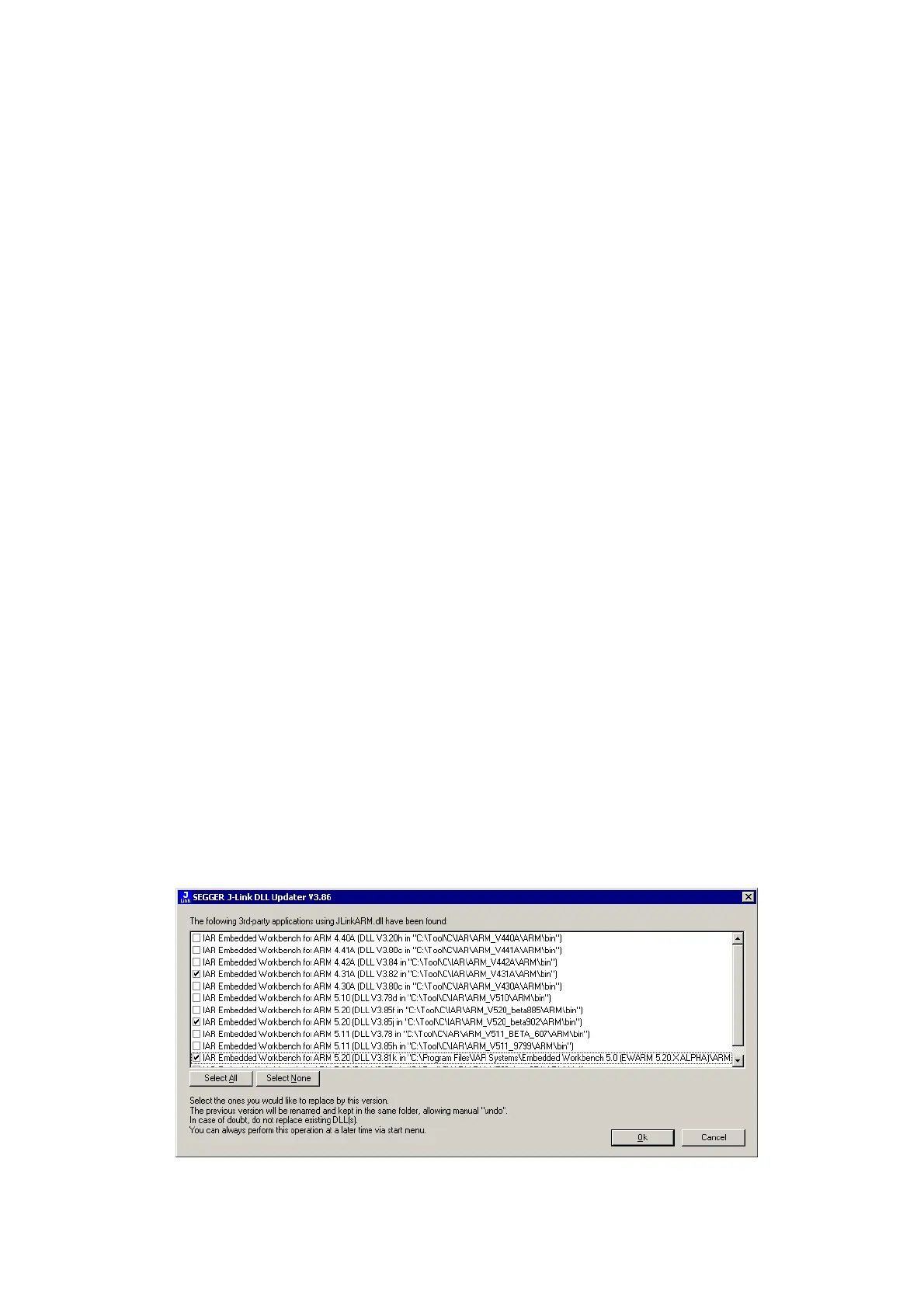 installation which has been found. Click Ok in order to update the JLinkARM.dll