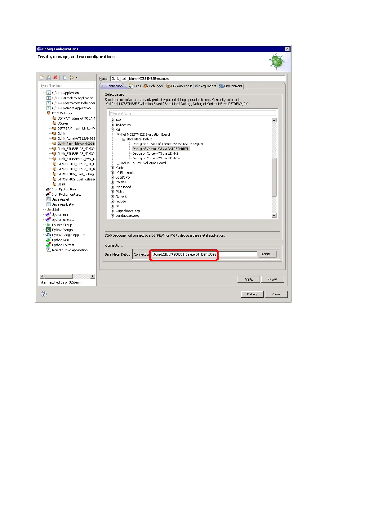 •In the Debugger tab, select 'Debug from symbol' and enter main or select Debug