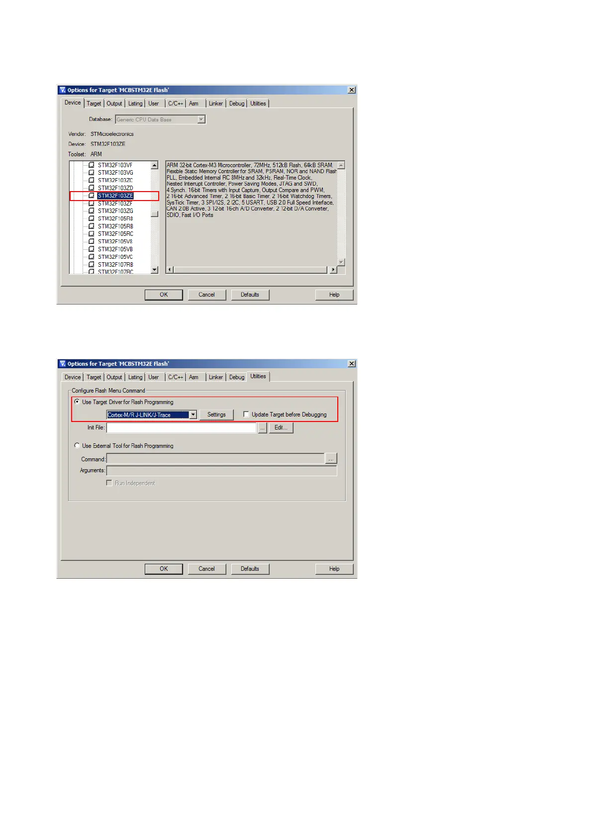 tings can be found at Project->Options for Target->Device.