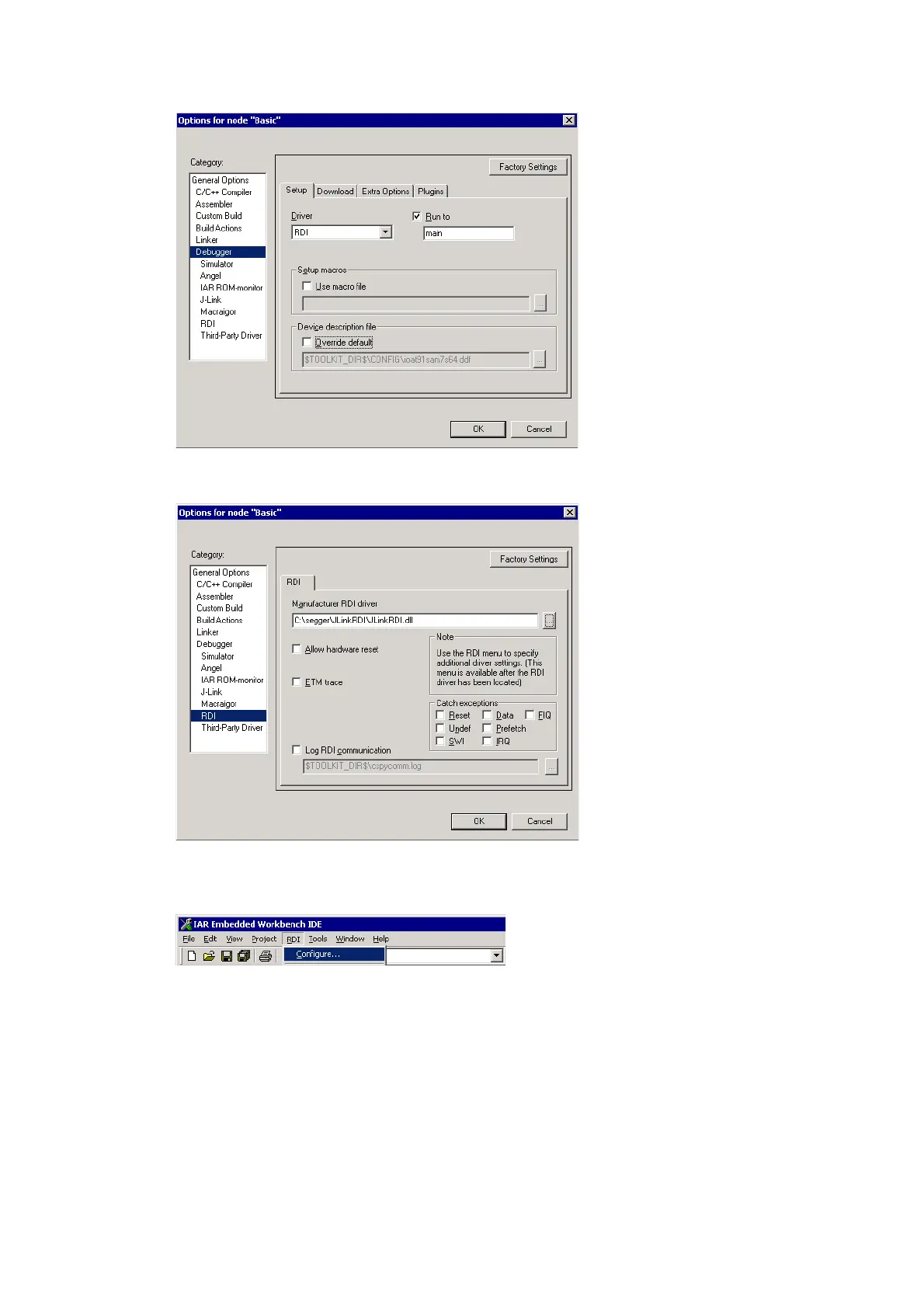 3. Go to the RDI page of the Debugger options, select the manufacturer driver