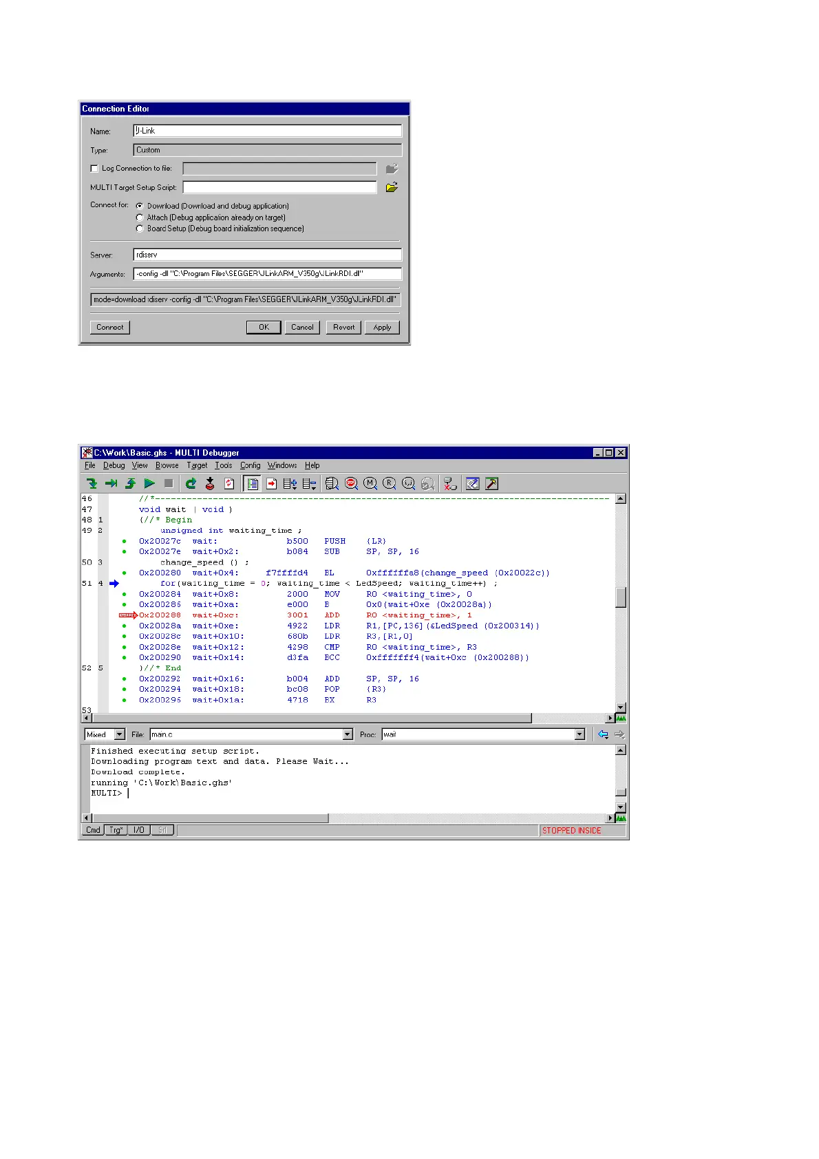 J-Link RDI Configuration dialog will open. For more information about the