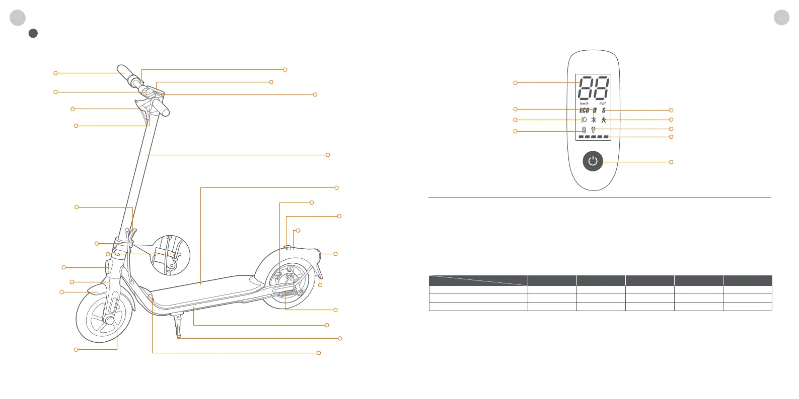 Startknopf: Zum Einschalten den Startknopf kurz drücken. Die Taste 3 Sekunden lang gedrückt halten, um den Roller auszuschalten.