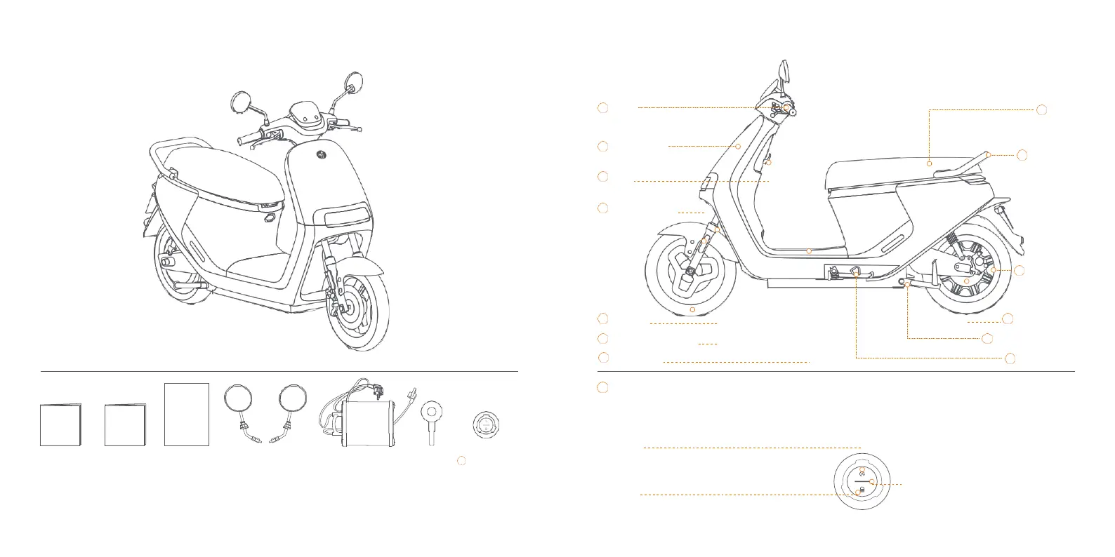 Duw deze knop om de scooter af te sluiten als deze uitstaat.
