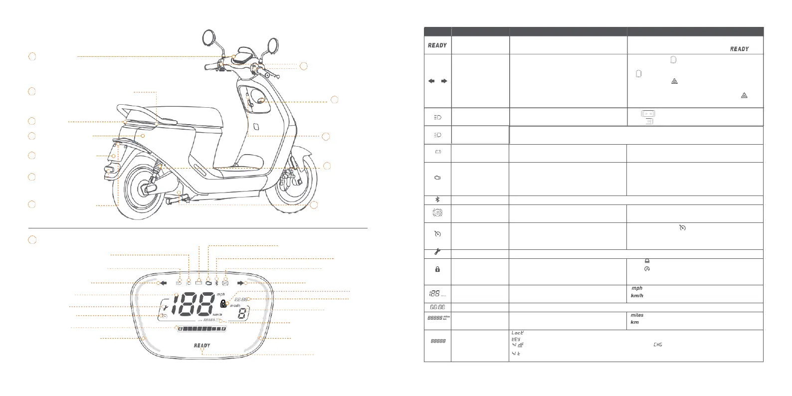 Orange: Side stand not retracted or no rider on seat