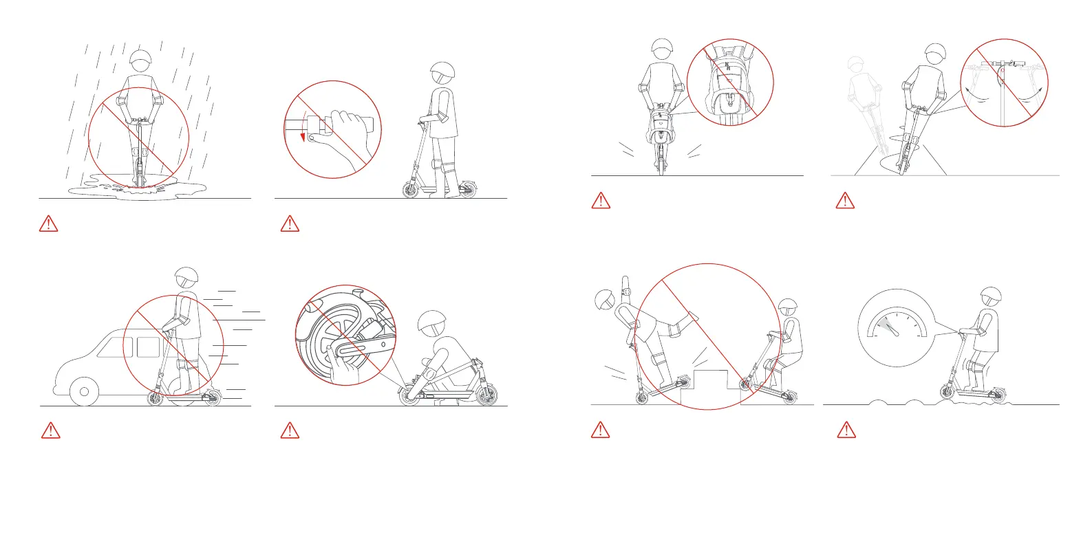 DO NOT overtake. DO NOT touch the hub motor after riding