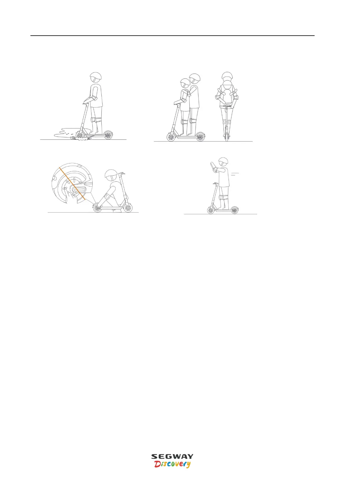 8) Do not ride through puddles or any other (water) obstacles. In such a case please lower your speed and