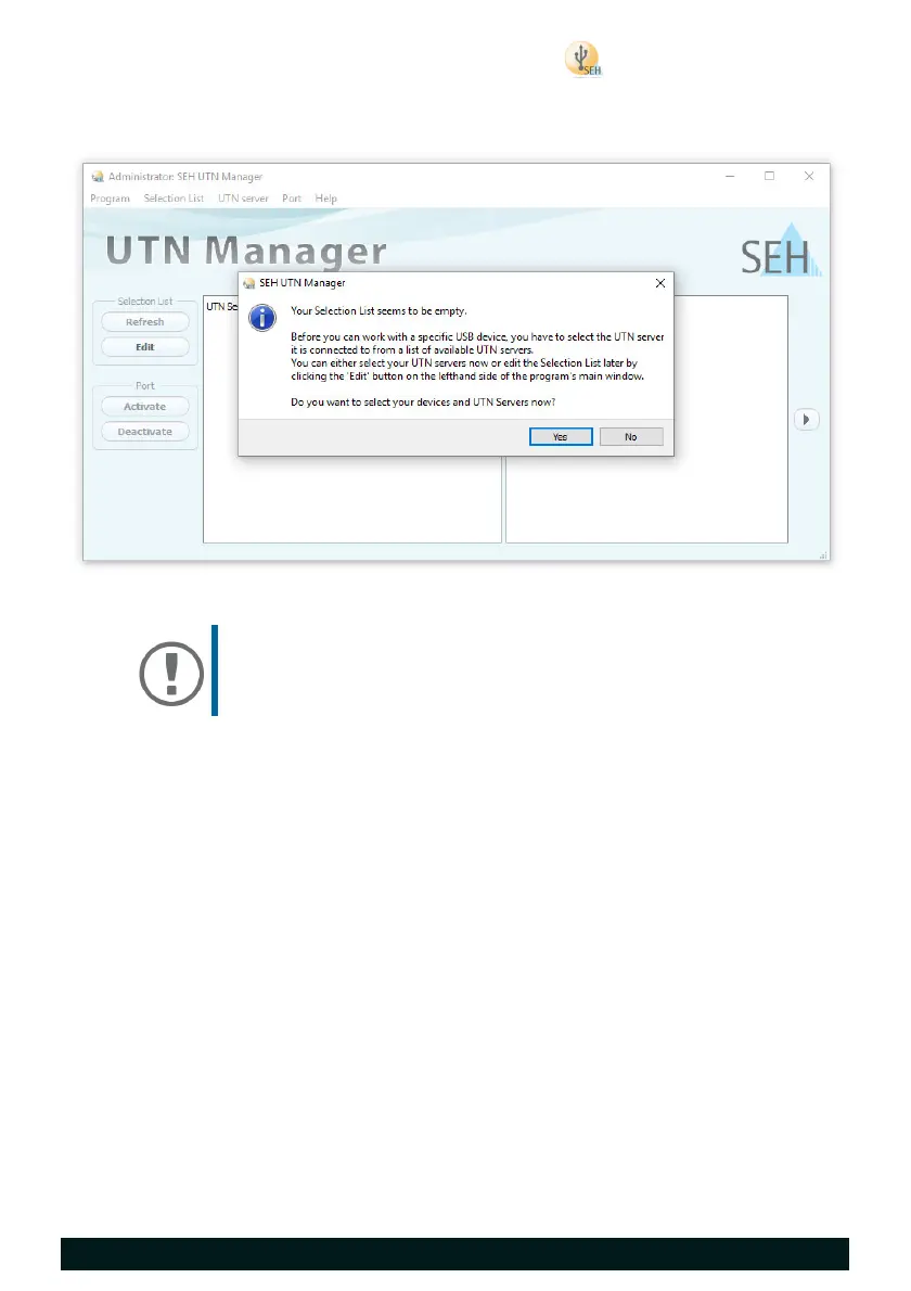 You recognize the SEH UTN Manager by its icon: . The program is started