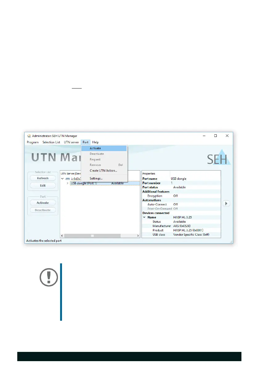client and the USB port of the UTN server to which the USB dongle is connected.