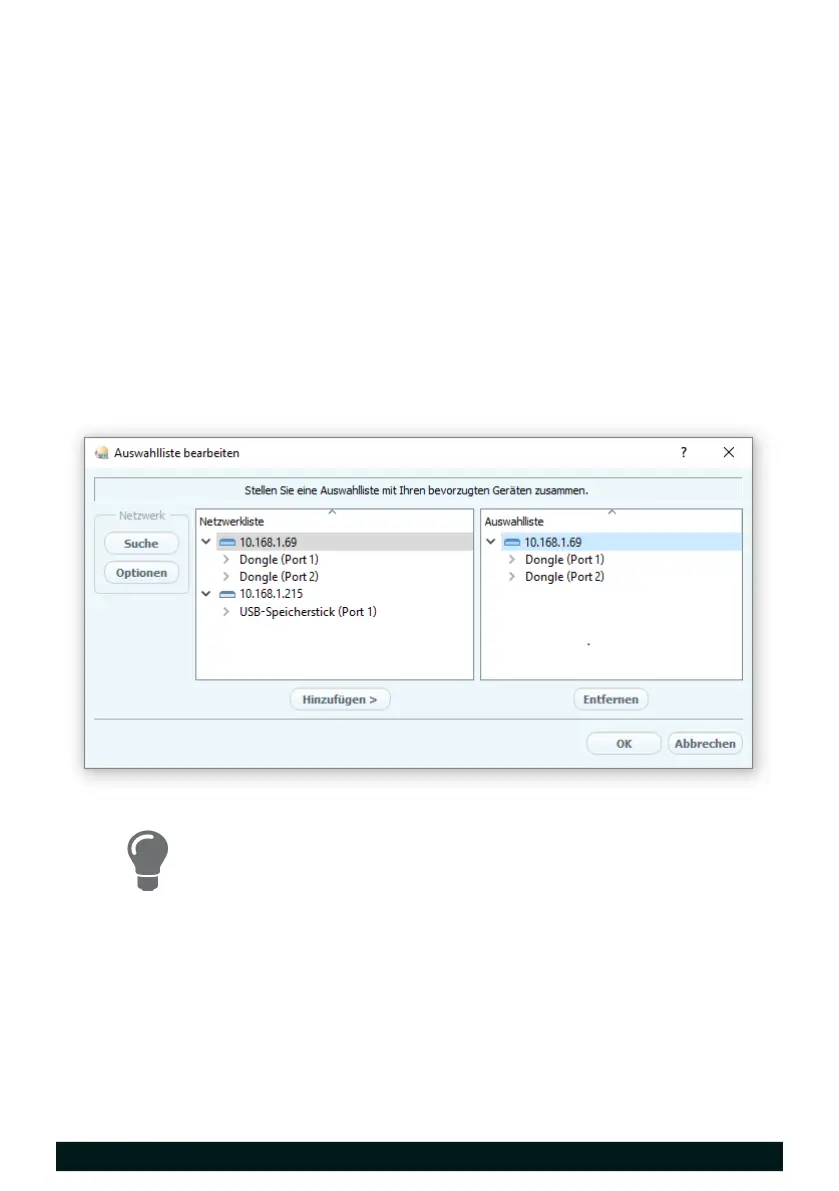 Geräten bzw. USB-Dongles der Auswahlliste hinzu.