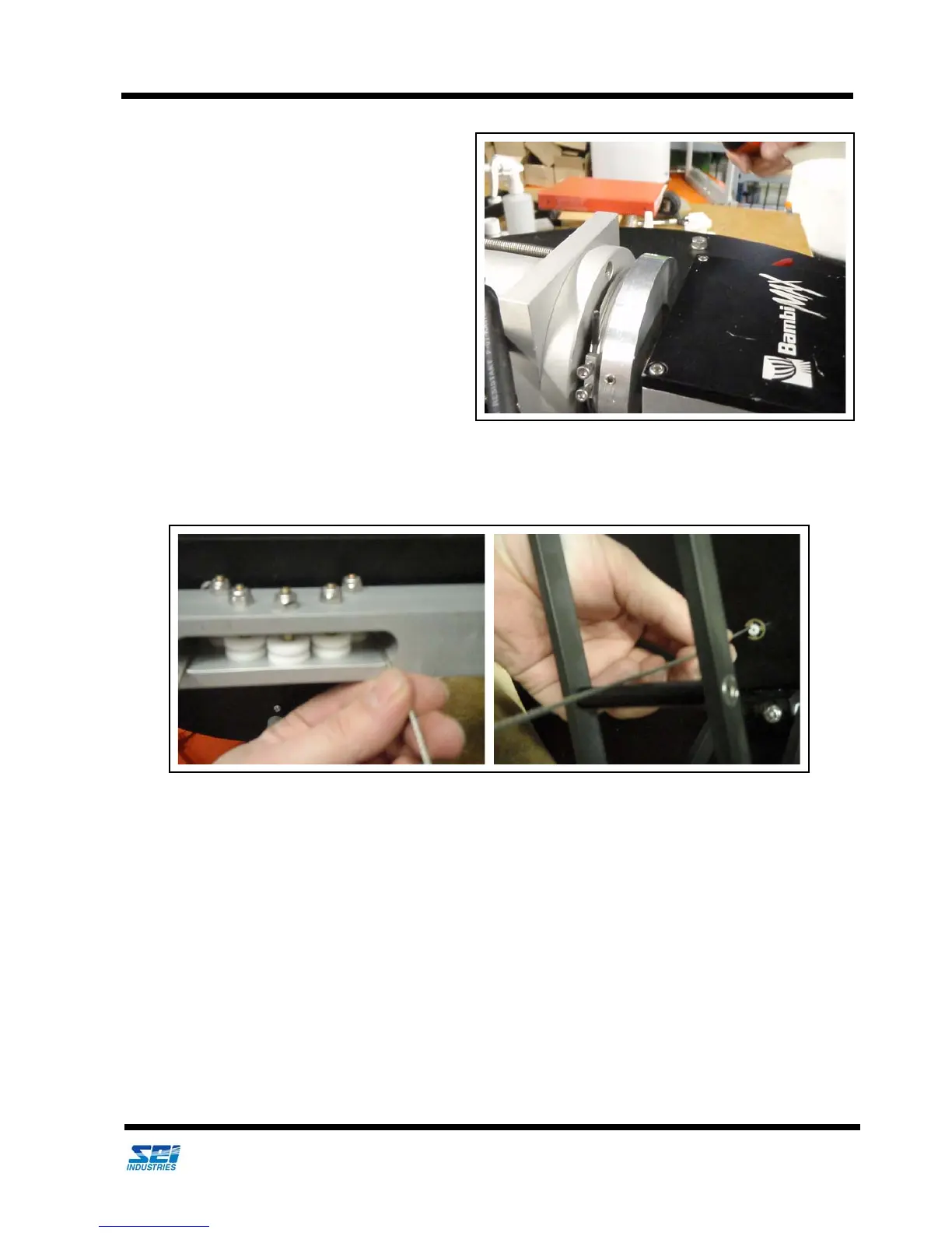 9. Remove the weight and spacer from the lift bar, install the cable over the five sheaves and trim the