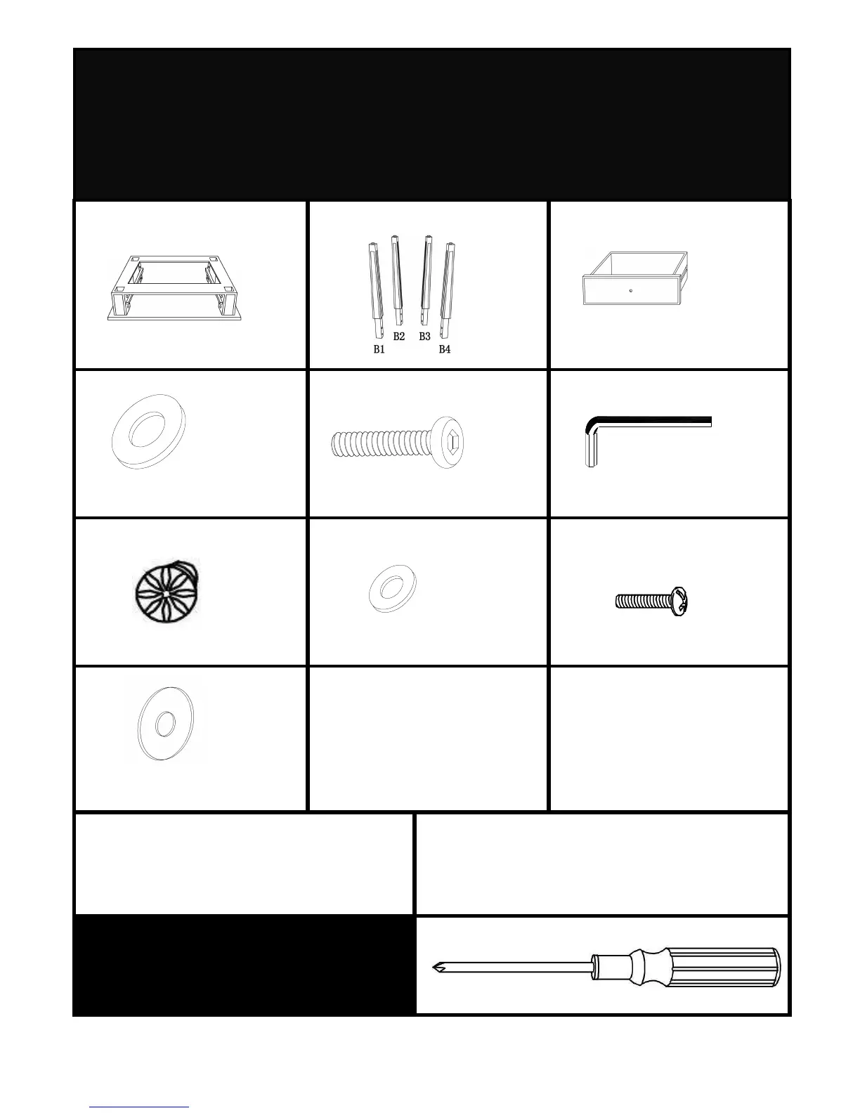 beginning assembly, separate each type of screw. Carefully study the screw diagrams below.