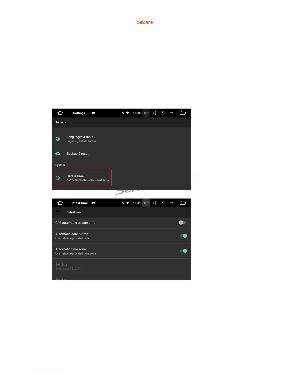 Seicane H201 - System and Accessibility Settings; Date and Time Configuration