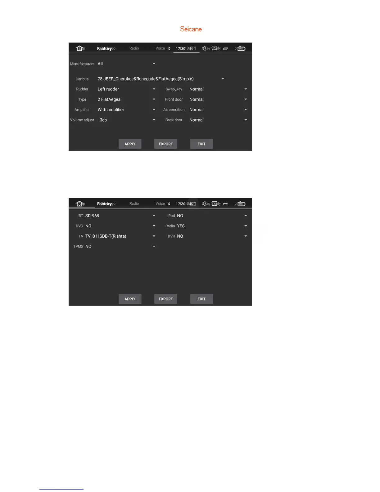 Change the options for Bluetooth, DVD,TV and iPod.