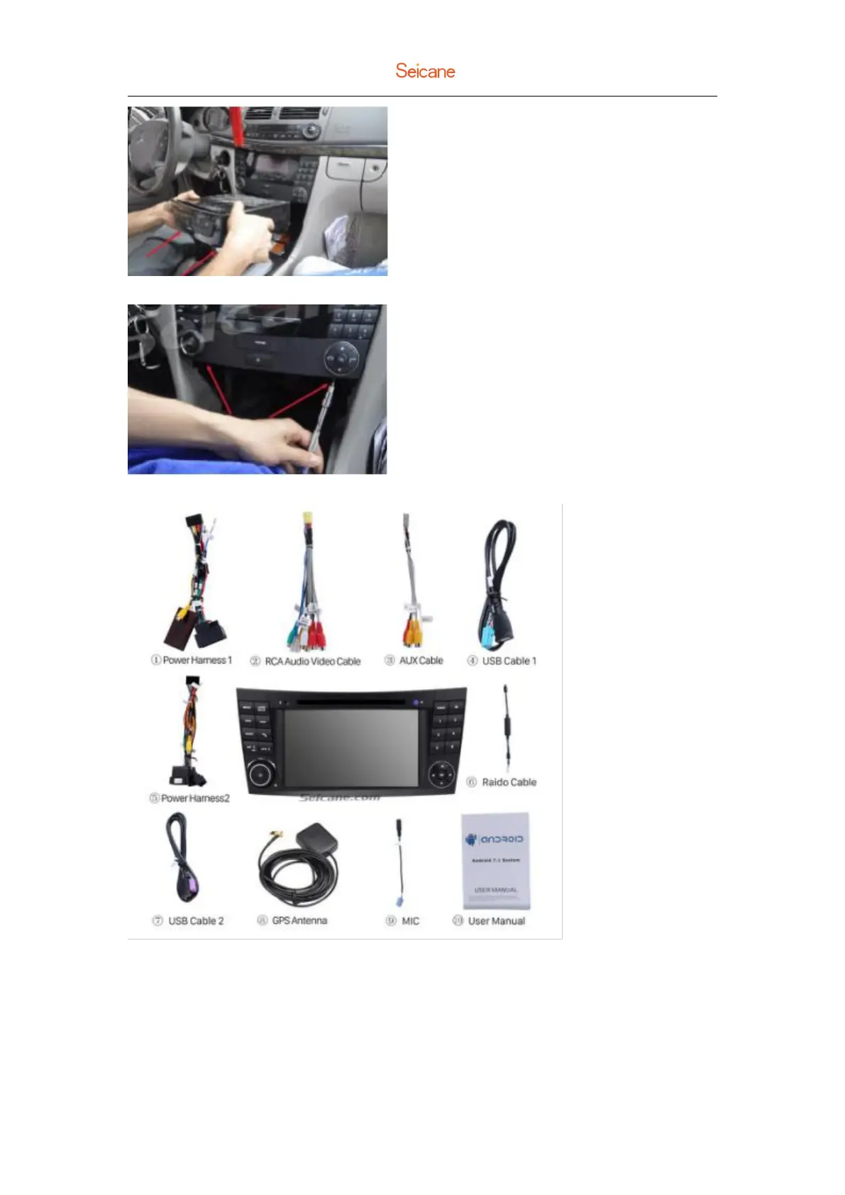 5. Check all the accessories for the new Seicane head unit.
