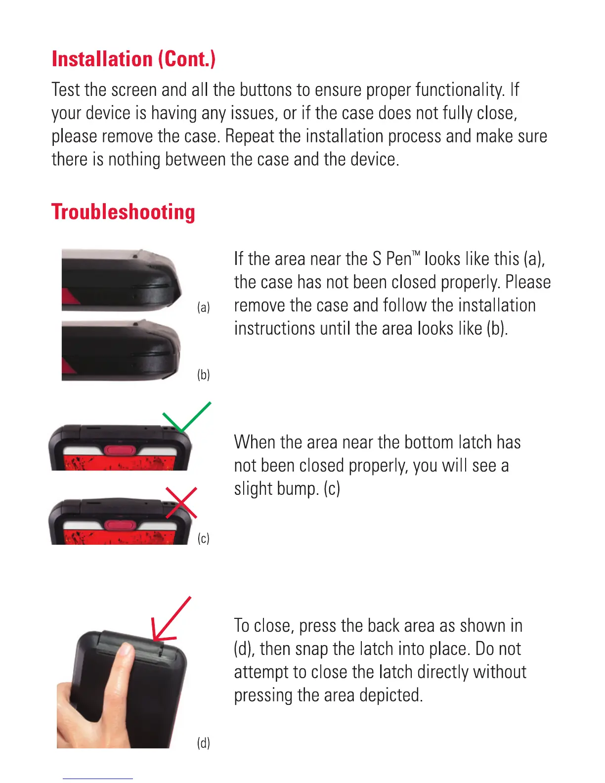 Seidio OBEX - Installation Final Checks; Troubleshooting Installation