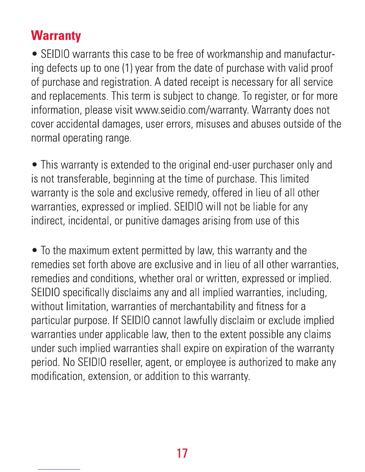 Seidio OBEX - Warranty Information