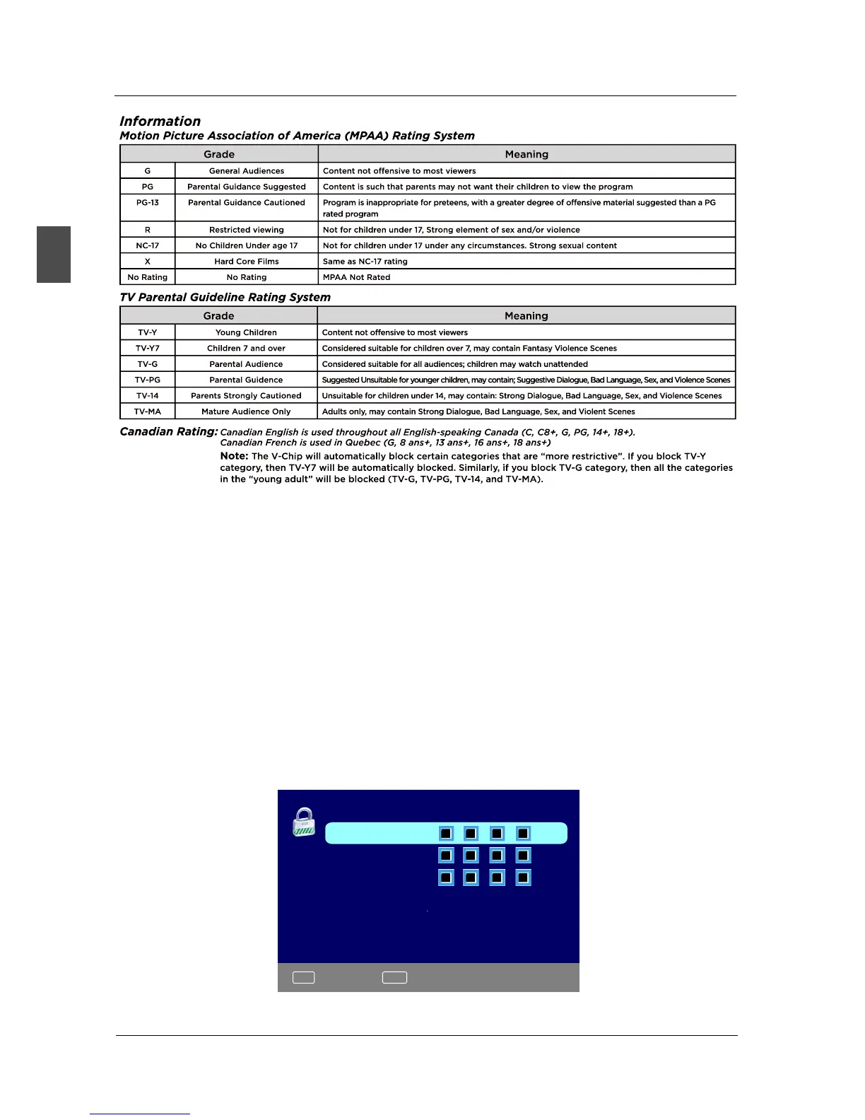 If the DTV program doesn’t have this rating information, this option will be in gray.