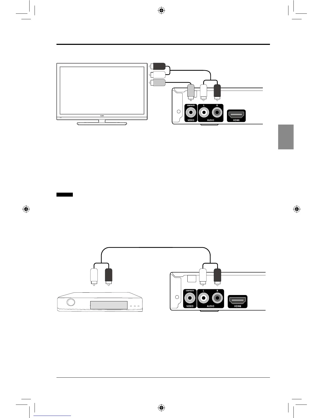 1. Utilizando los cables de audio, conecte la SALIDA de AUDIO (roja y blanca) del