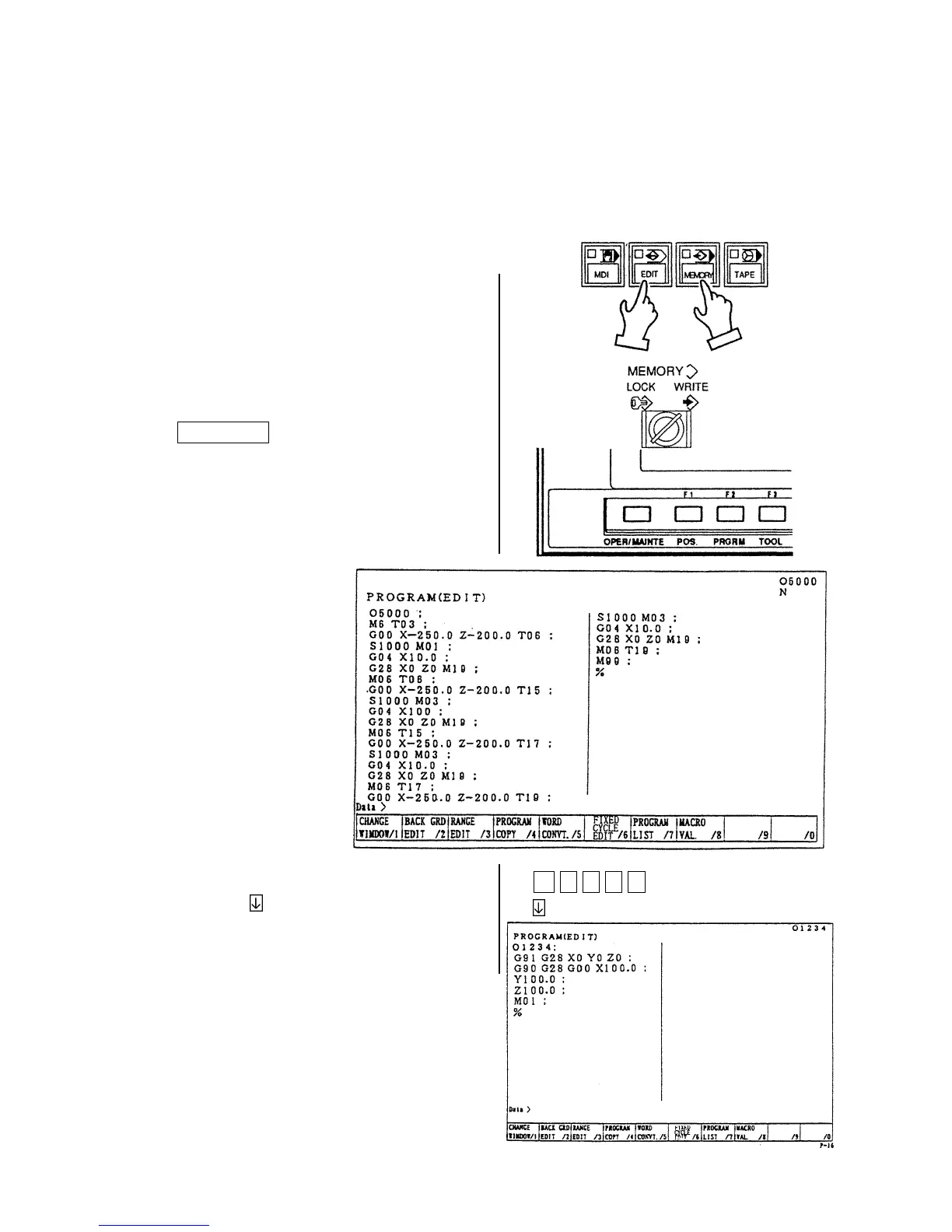 2) Set the memory key to [WRITE].