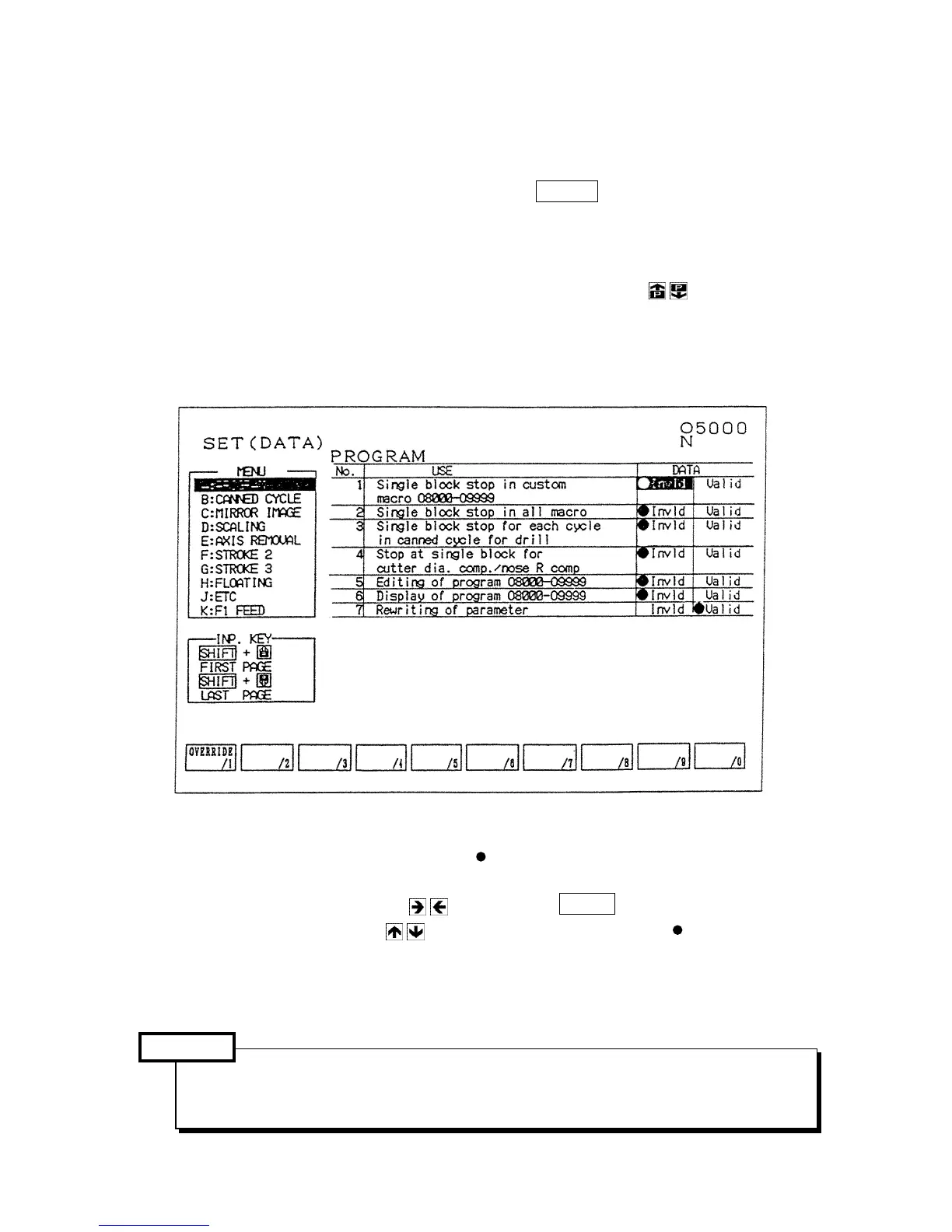 The setting (Data) screen is displayed by pressing the F5/SET key.
