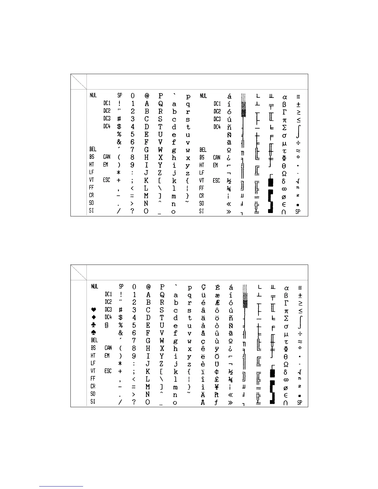 Note: This character set is selected with ESC 7 in IBM mode. Refer to Control code summary section.