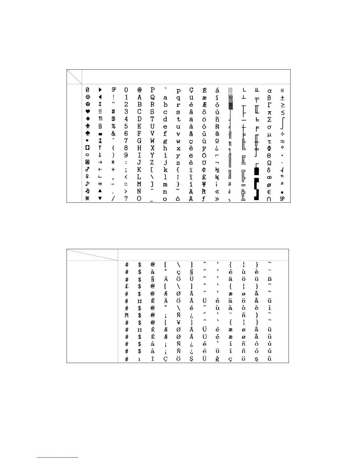 Note: This character set is selected with ESC \. Refer to Control code summary section.