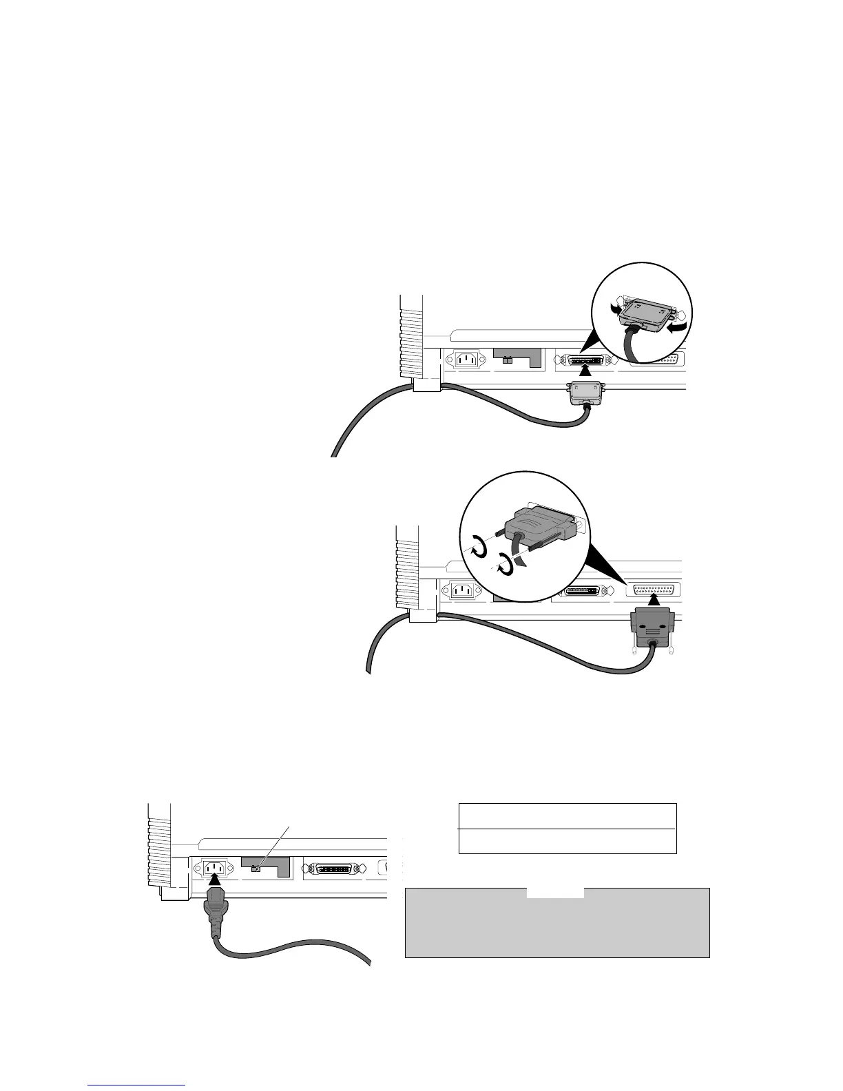Check the power requirement printed on the rating plate on the rear of the printer before attaching