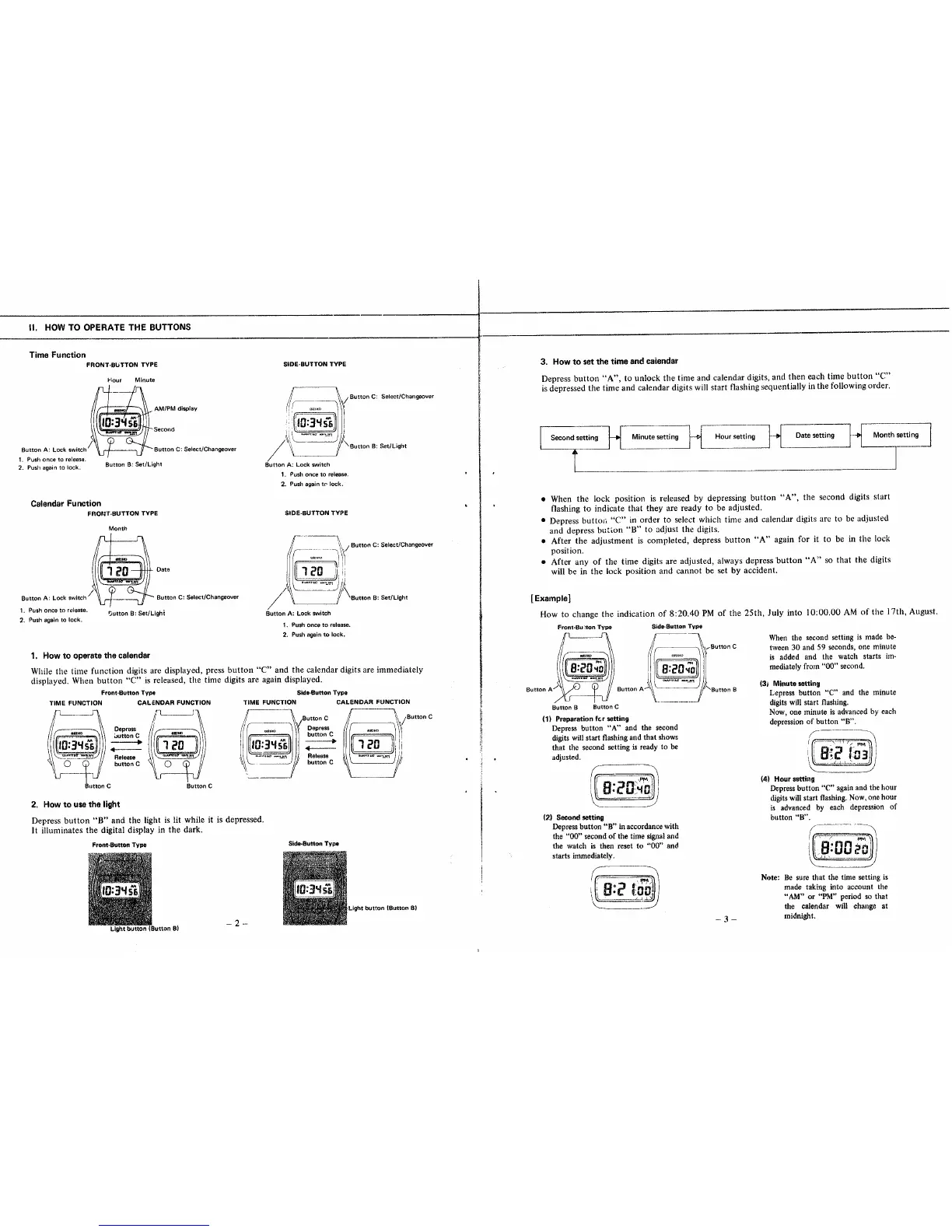 Seiko 0439A - How to Operate the Buttons; How to Operate Calendar; How to Use the Light; How to Set Time and Calendar