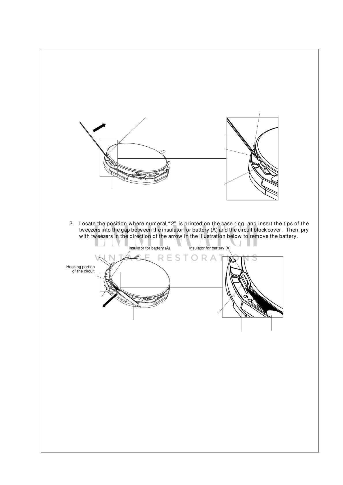 tweezers into the gap between the insulator for battery (A) and the circuit block cover . Then, pry