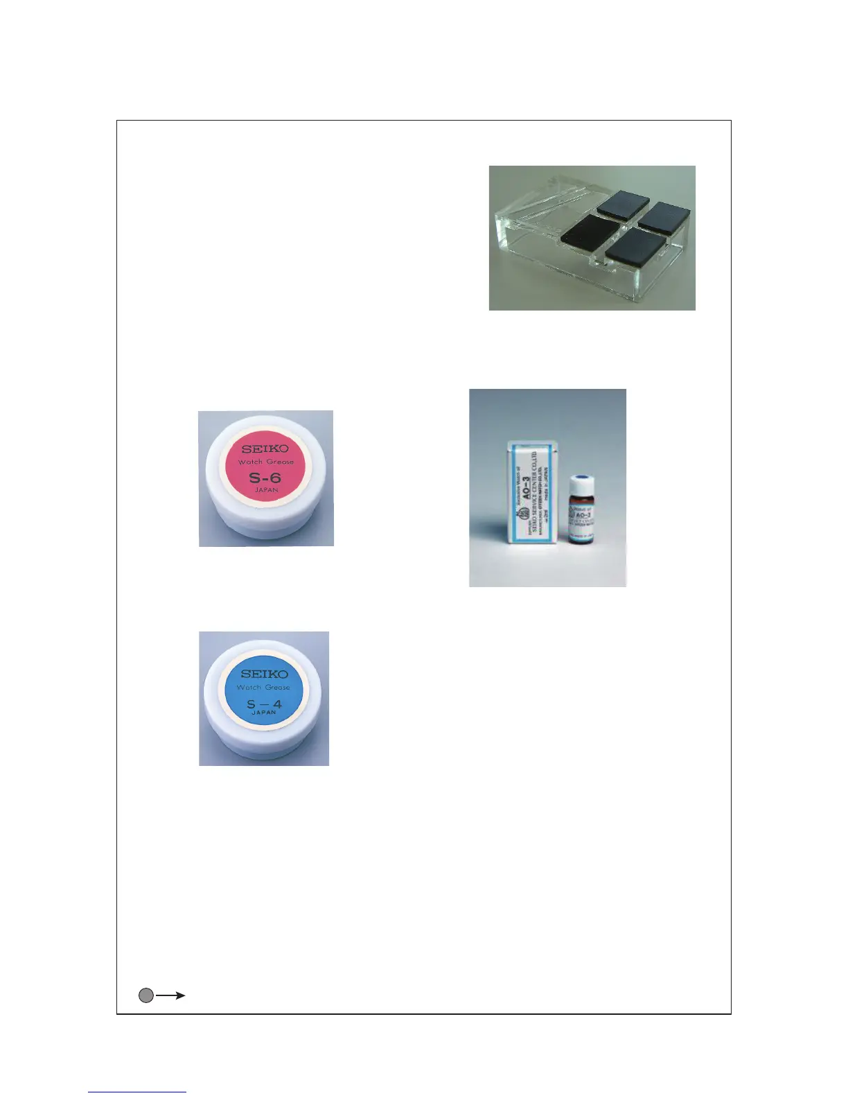 SEIKO watch grease S-6 and S-4. watch oil AO-3 (or Moebius A)