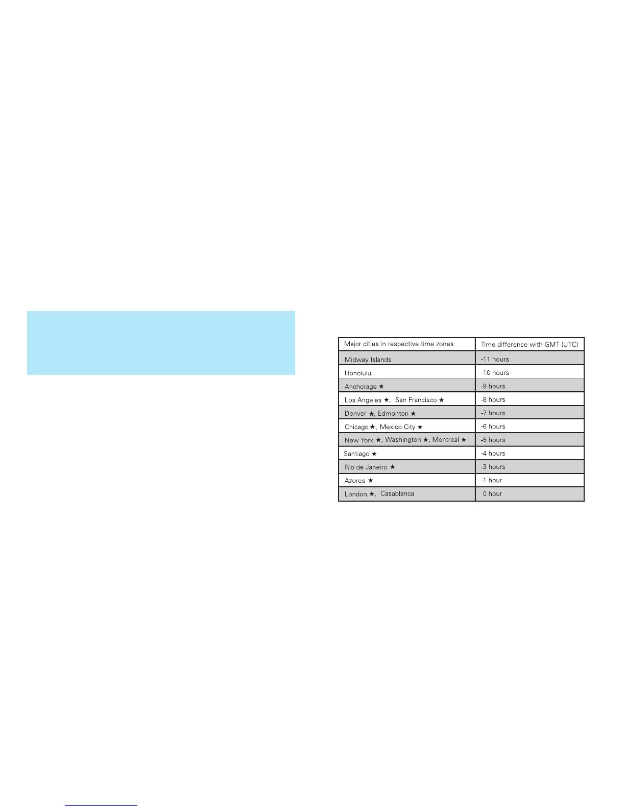 * Refer to the table below for time differences from GMT (UTC) in major cities in