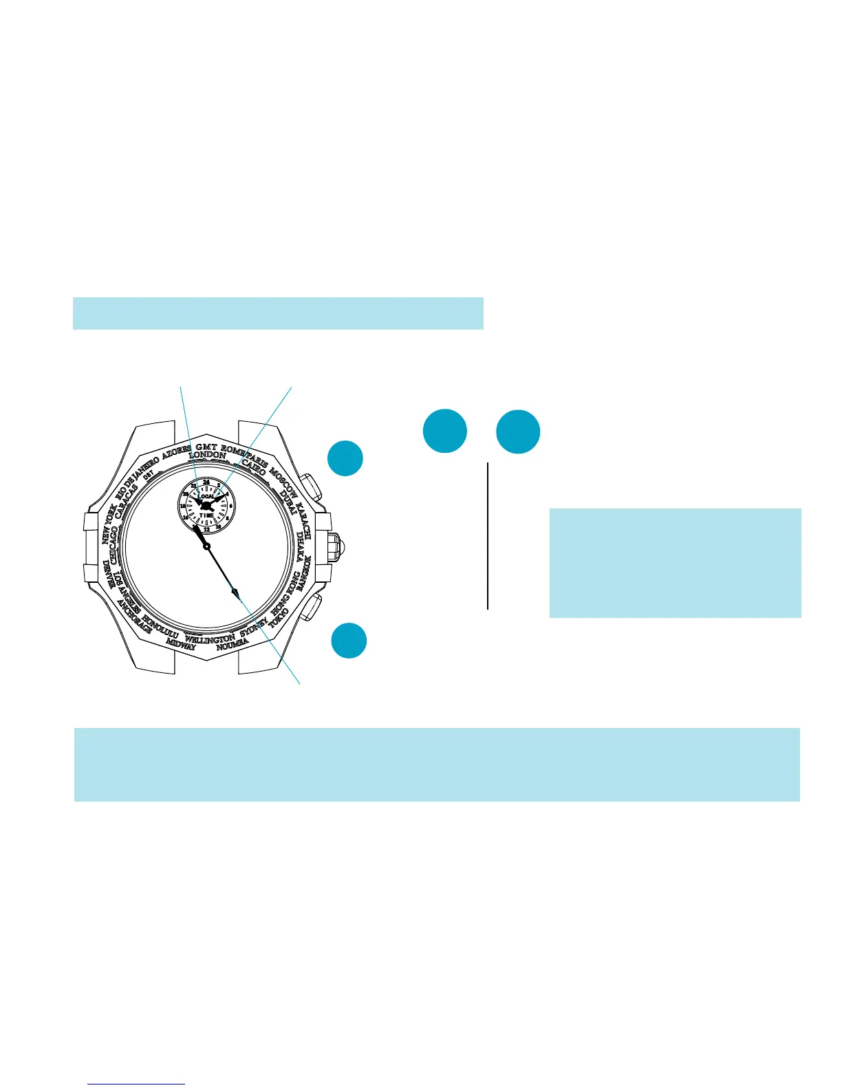 hand setting. If the WORLD TIME hands are not correctly set, the precise time of the selected city