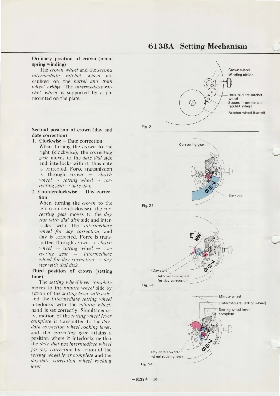 Seiko 6138A - Crown Setting Operations; Day and Date Correction; Time Setting