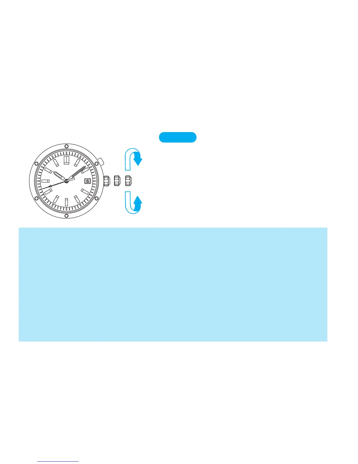 Zeiger durch Drehen der Krone im Uhrzeigersinn vorwärts bewegt werden, und zwischen 21:00 und