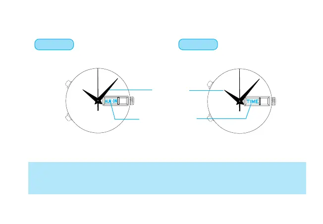 [TIME mode with alarm engaged] [TIME mode with alarm disengaged]