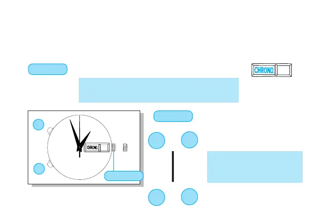 CROWN Turn to set MODE INDICATOR to “CHRONO.”.