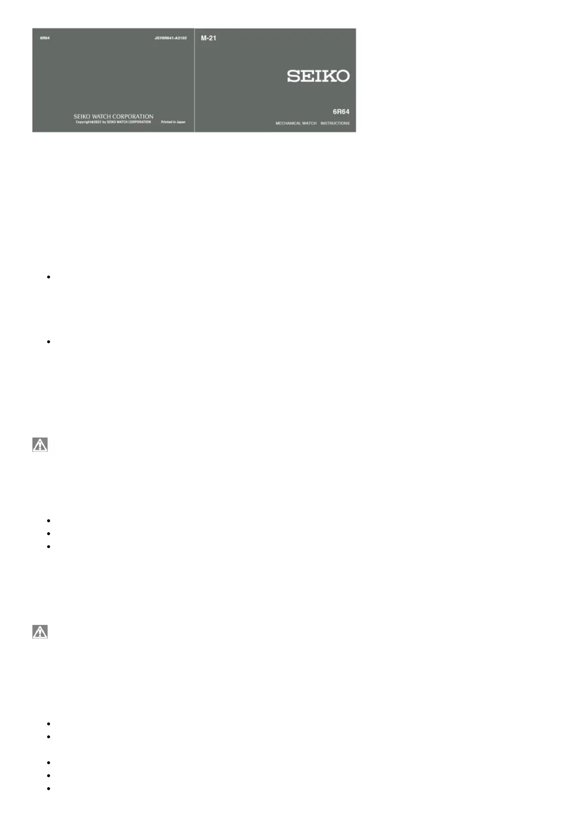 Thank you very much for choosing a SEIKO watch. For proper and safe use of your SEIKO watch, please read