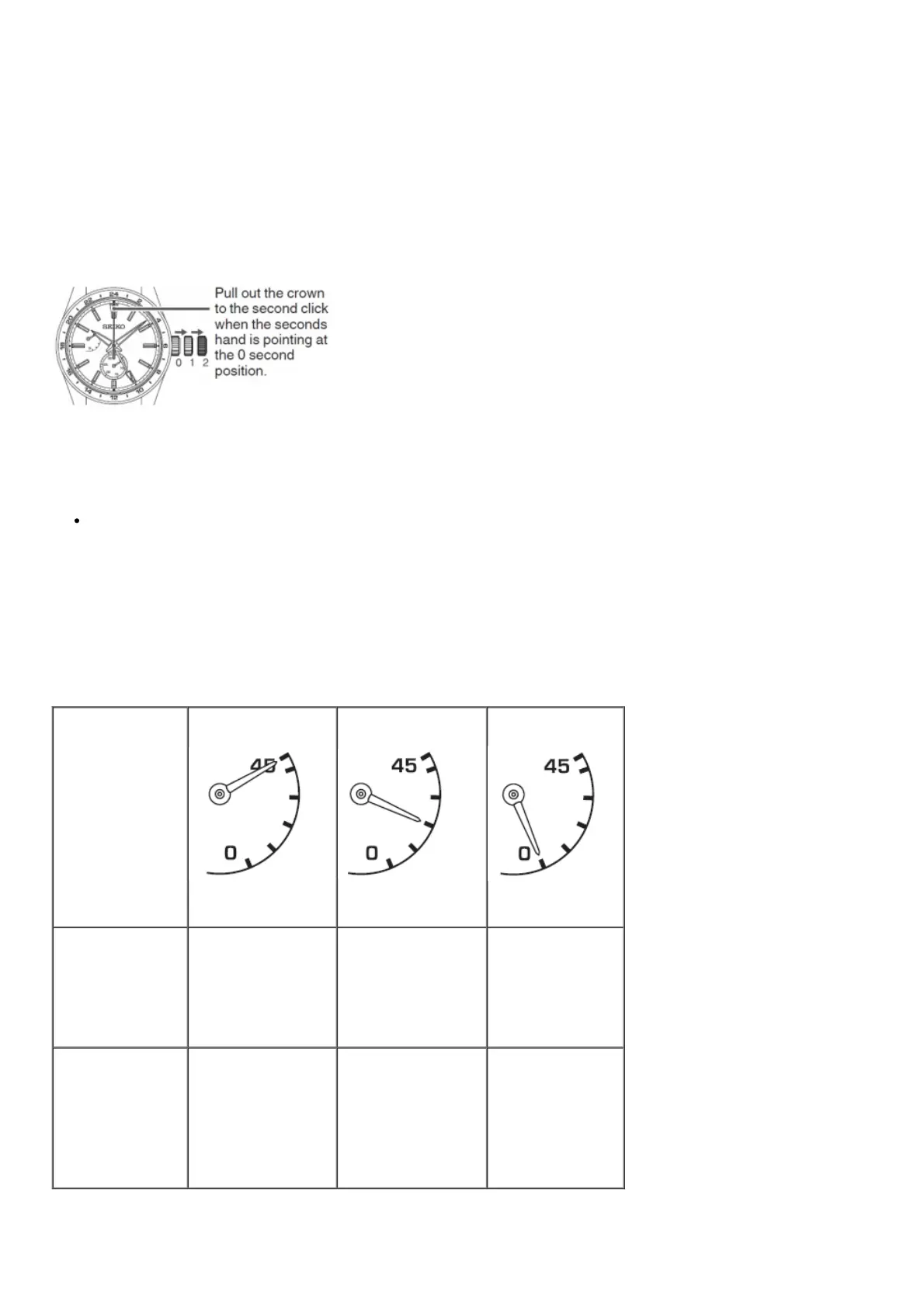 2 Pull out the crown to the second click when the seconds hand is pointing at the 0 second position. The