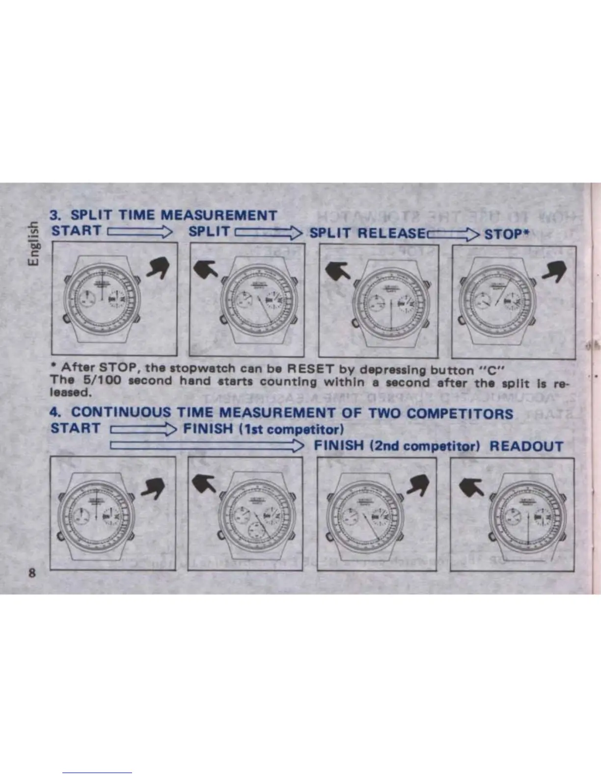 Seiko 7A38 - How to Use the Stopwatch; Standard Stopwatch Measurement; Accumulated Elapsed Time Measurement; Split Time Measurement