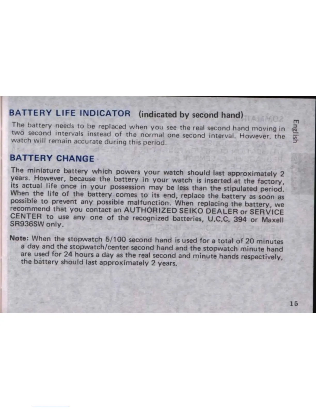 Seiko 7A38 - Battery Life Indicator; Battery Change