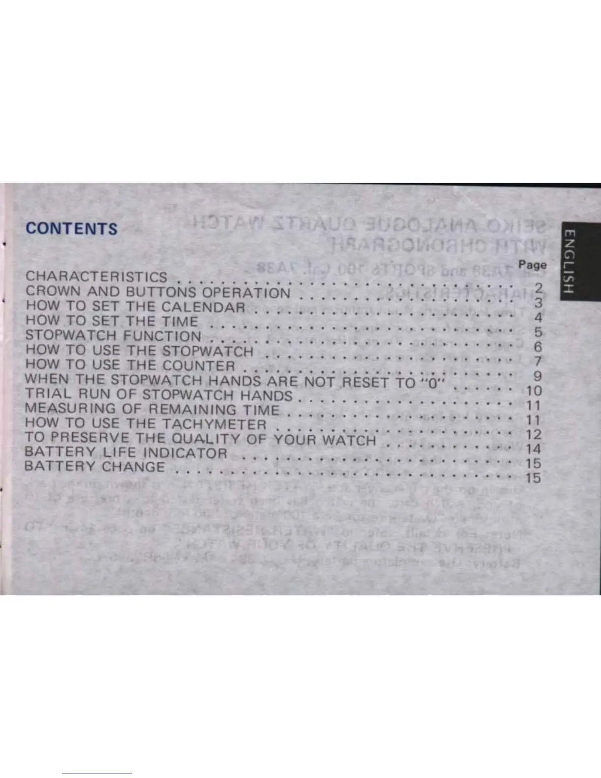 Seiko 7A38 - Contents