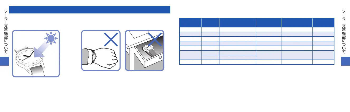 ※使いはじめ、または充電不足で停止していた時計を駆動させるときは、右ページの表をめやすに十分な充電を行っ