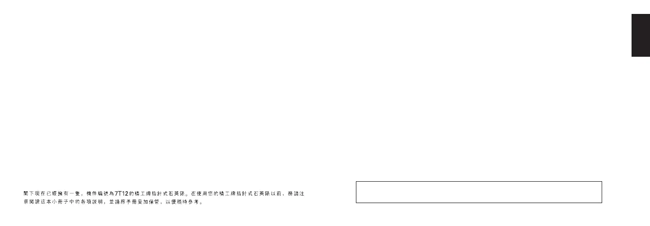 You are now the proud owner of a SEIKO Analogue Quartz Watch Cal. 7T12. For best results, please read