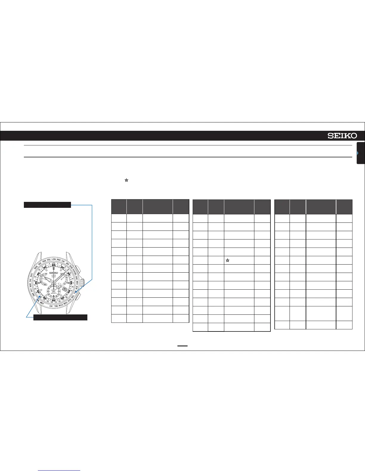 The following list shows the relationship between displays of the bezel and dial ring and time difference from the UTC.