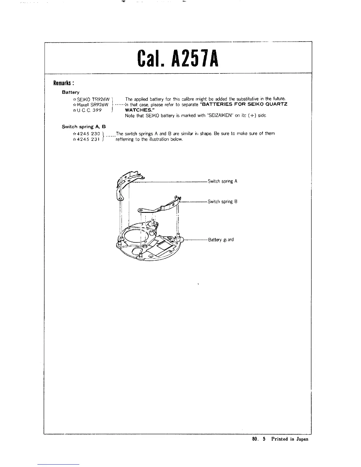 Seiko A257A - Battery; Switch Spring A, B