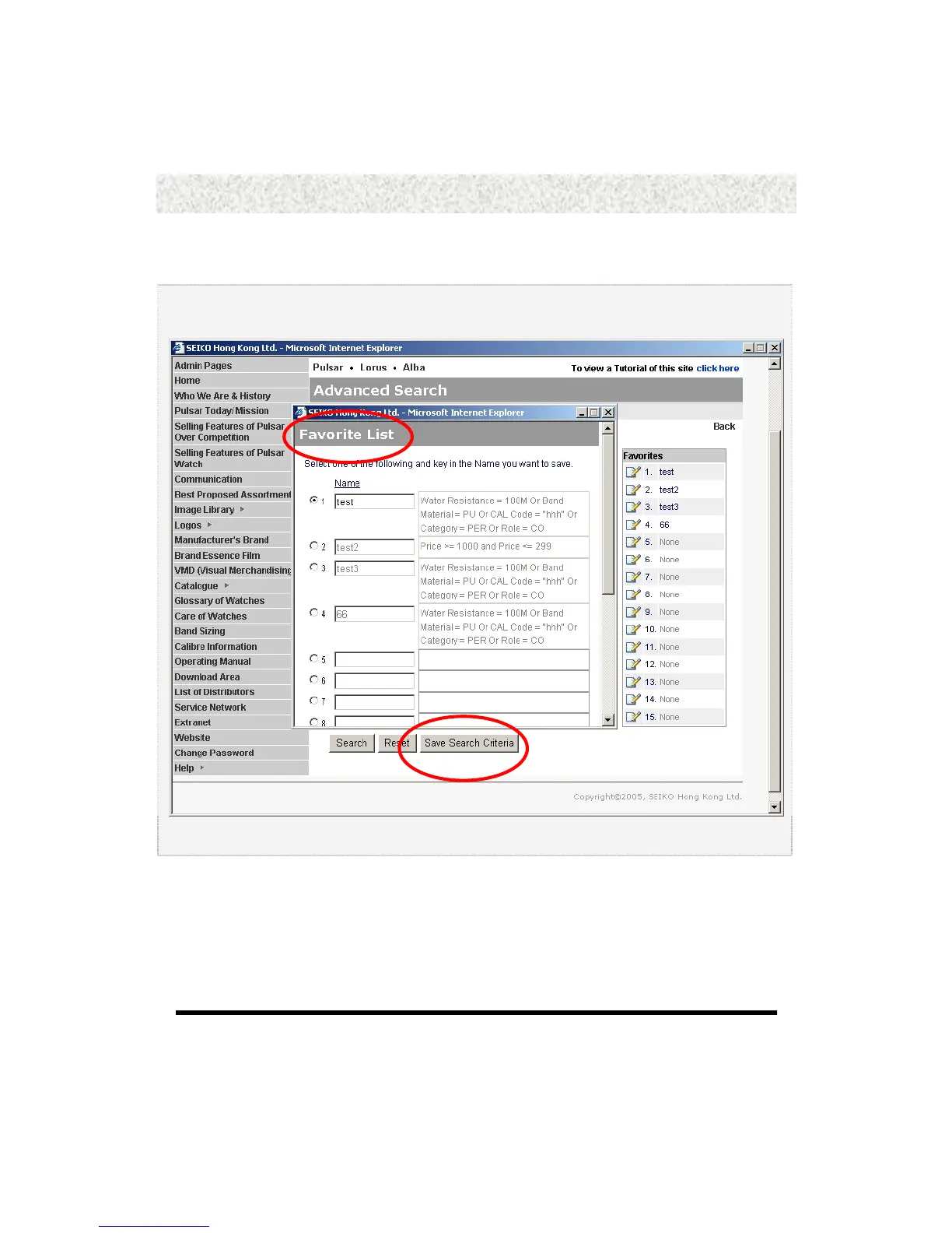 1. When click Save Search Criteria as below, you can open the “Favorites List“.
