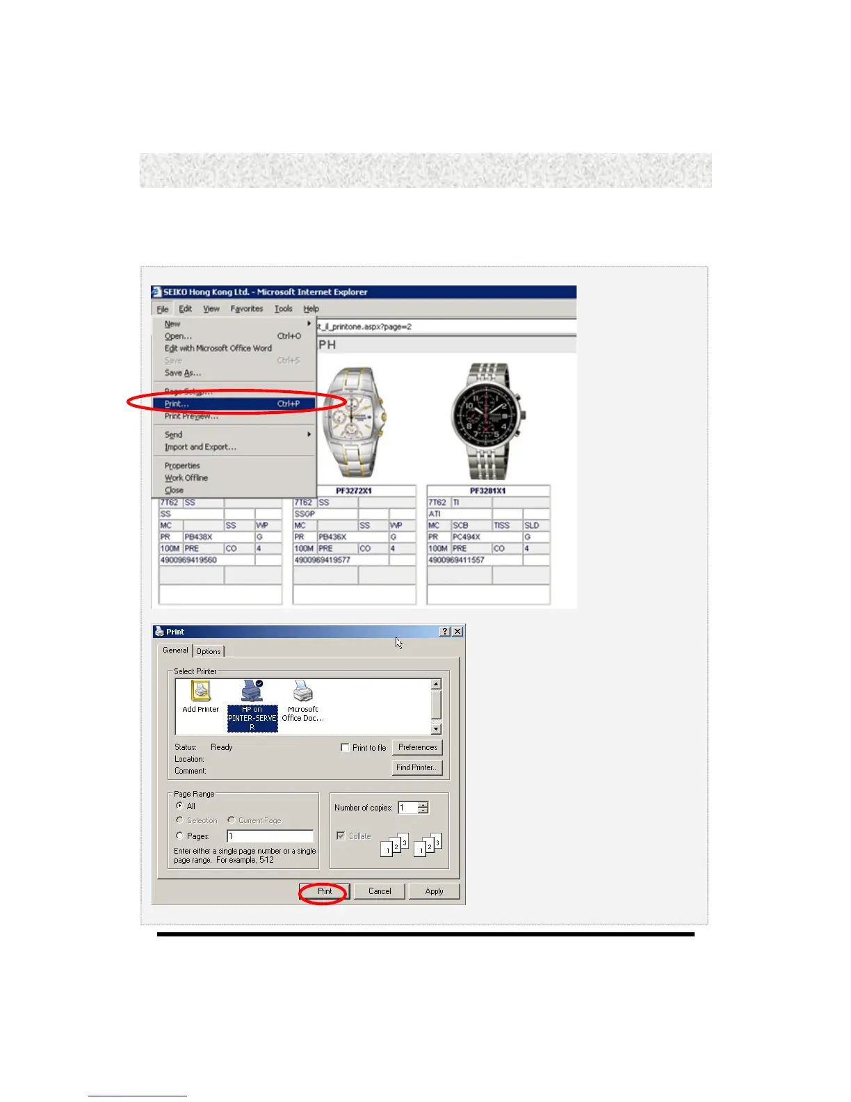 3. Select the right printer then press “Print“.