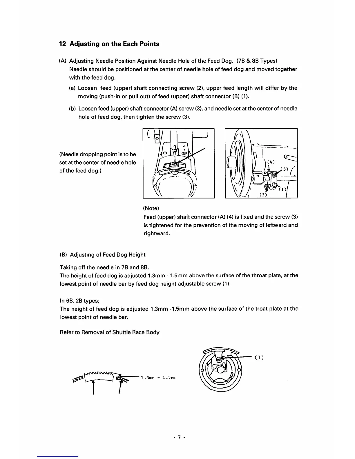 Seiko CH-2B - 12 Adjusting on the each Points; (A) Adjusting Needle Position against Needle Hole of; (B) Adjusting of Feed Dog Height