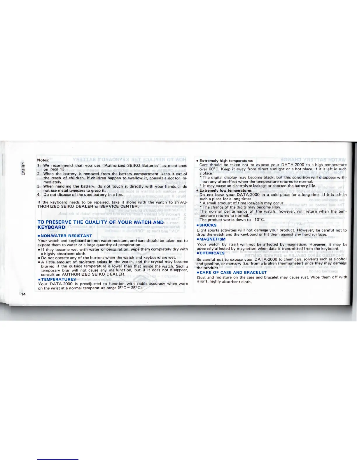 Seiko Data-2000 - To Preserve the Quality of Your Watch and Keyboard; Environmental and Physical Precautions; Case and Bracelet Maintenance