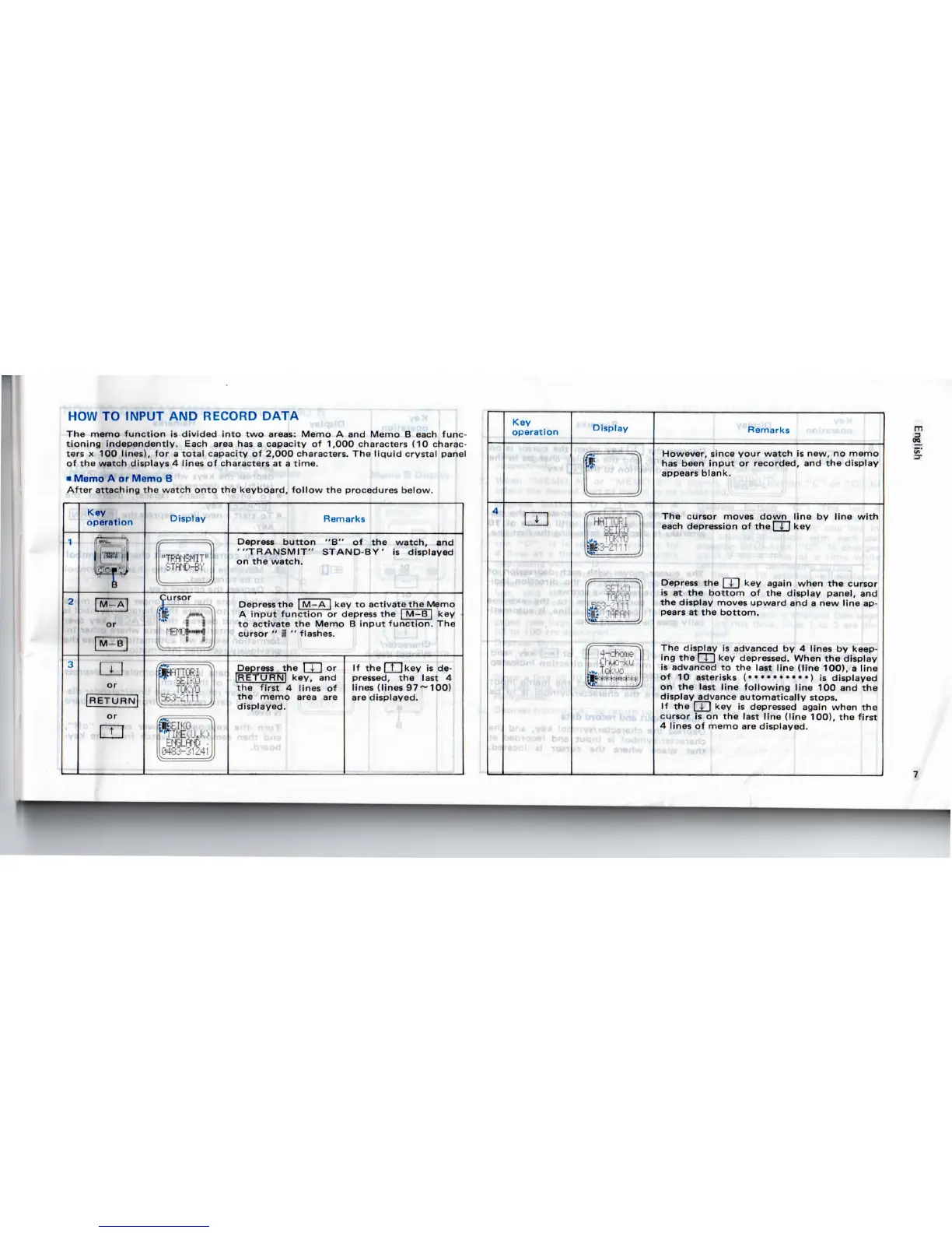 Seiko Data-2000 - How to Input and Record Data; Memo A and Memo B Input; Displaying Memo Lines